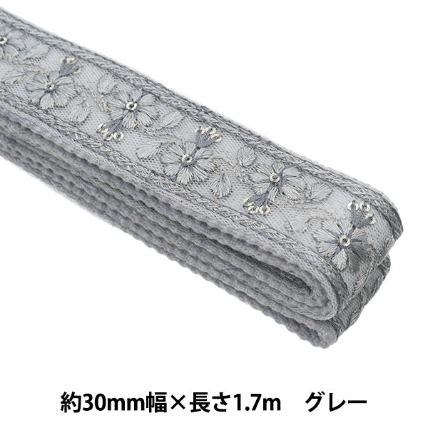 الحرف اليدويةالزركشة "شريط حقيبة تطريز هندي عرض 30 ملم × طول 1.7 متر رمادي TA-339D"
