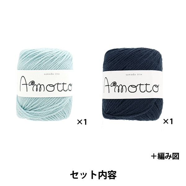 طقم الحياكة "طقم القفازات بنمط محبوك من Amotto سماوي × كحلي" SAWADA Sawada