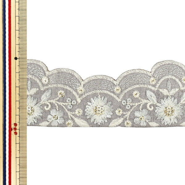 【数量5から】 手芸ブレード 『2025 インド刺繍ブレード 約4.5cm幅 グレー×グレー M-883A』