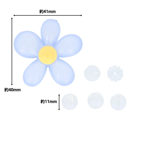 水色のお花と、クリアの溝入り丸ビーズのセットです。