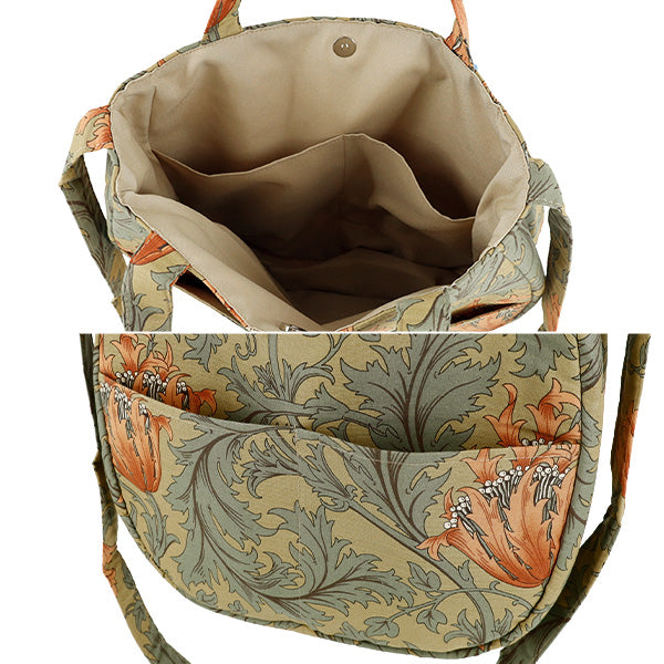 Anemonenmuster von William MorrisStoffDies ist eine Umhängetasche aus. Es hat einen Zwickel von ca. 8 cm und zwei Taschen auf der Vorderseite, wodurch es kompakt ist und dennoch Stauraum bietet.
