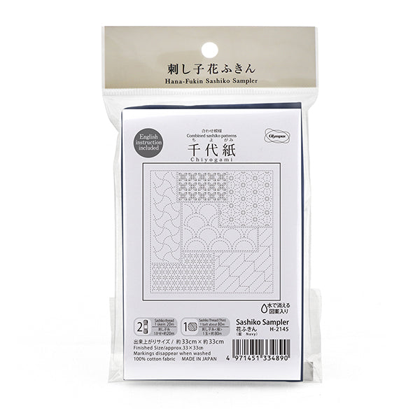 Embroidery Fabric 『Sashiko Flower Towel Cloth Pack, Combined Pattern, Chiyogami, Indigo, H-2145" Olympus