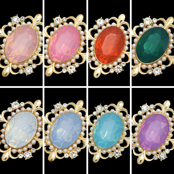 Une magnifique partie du centre de Bijou avec une petite perle entourant une grande pierre elliptique avec une petite perle et décorée de pierres et de pièces d'or.