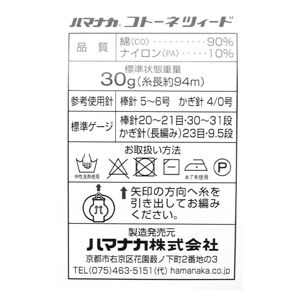 봄 / 여름털실 "Cotonetweed 11 번째 컬러" Hamanaka