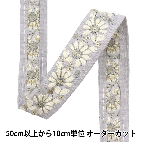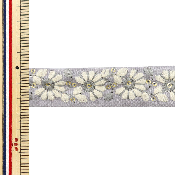 [수량 5에서] 수예브레이드 "2024 인도 자수 브레이드 회색 x 화이트 47169E"