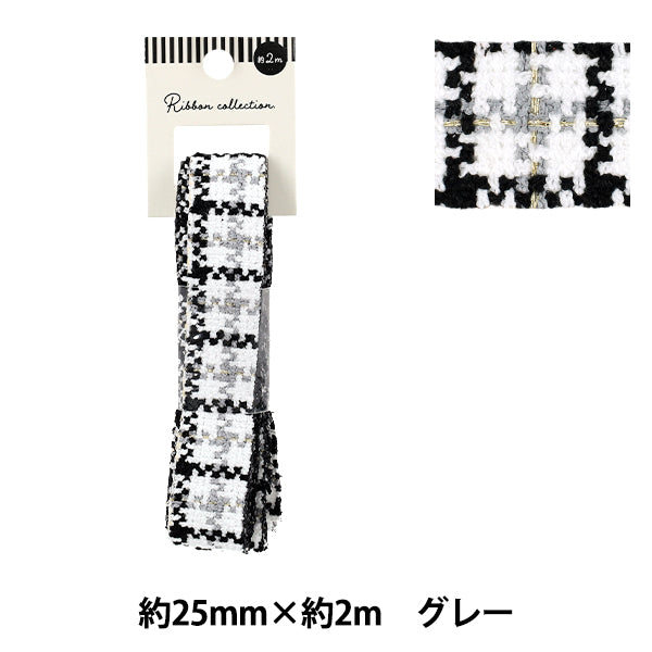 엇갈린 격자푹신하고 부드러운 트위드 패턴리본。