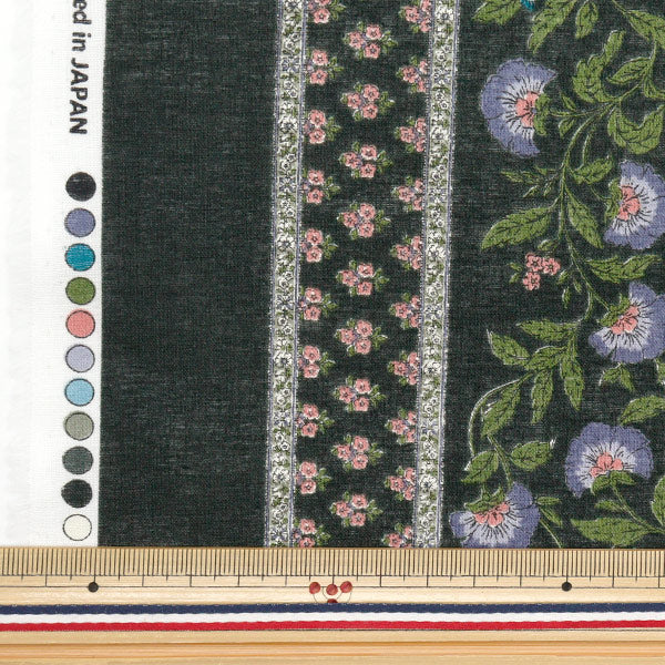 [布 春夏 薄手生地 ストライプ 植物 花柄 黒 紫 灰色]