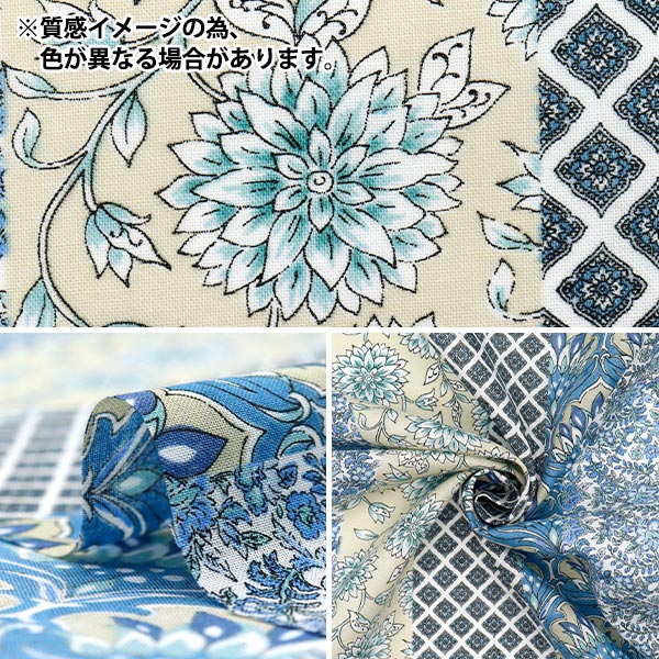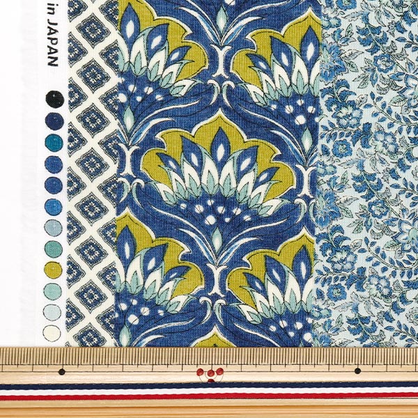 [布 春夏 薄手生地 ストライプ 植物 花柄 ひし形 青 青緑 ブルーグリーン]