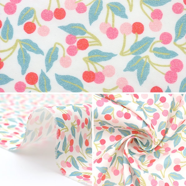 1969年のリバティのスカーフの縁のデザインをベースにしたフルーツ柄です。インパクトある色で描かれたサクランボの実が飛び出るように見えるデザインです。
