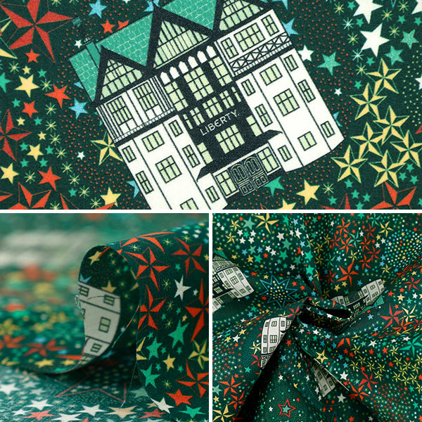 2011年秋冬コレクションのためにリバティのデザインスタジオで生み出されたアートワークが、フェスティブコレクションに合わせてリバティ本店を描き込んだデザインとして再解釈されました。