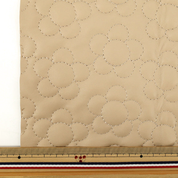 生地 『合皮キルトカットクロス フラワー 約65×80cm ベージュ CQ-GO-FL-BE』