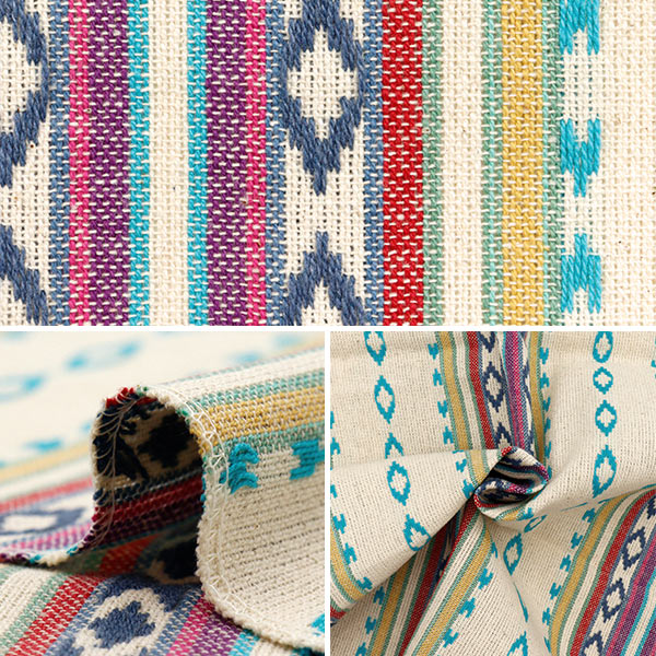 [布 民族調 ソーイング ハンドメイド 手作り 生活雑貨 小物 服飾 カラフル ボーダー マルチカラー ナチュラル 生成]