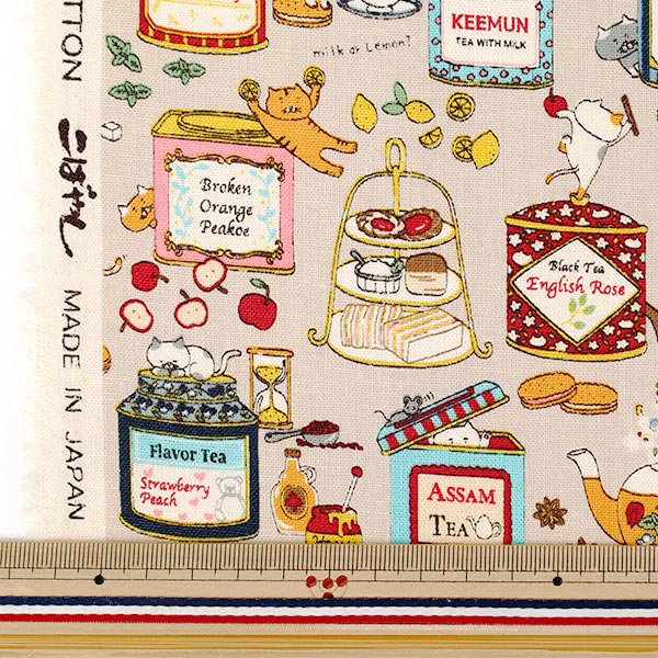 【数量5から】 生地 『綿麻キャンバス 紅茶猫 ナチュラル KTS7163-A』 COTTON KOBAYASHI コットンこばやし 小林繊維