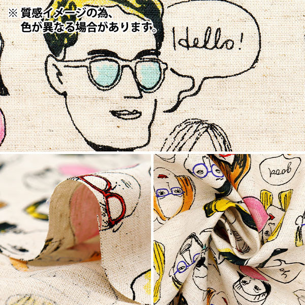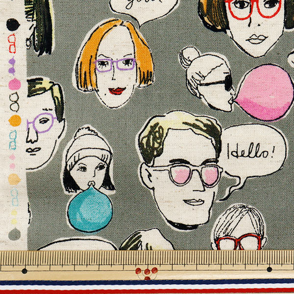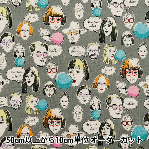 [コットンリネン 布 人物柄 ナチュラル POP 顔 灰色]