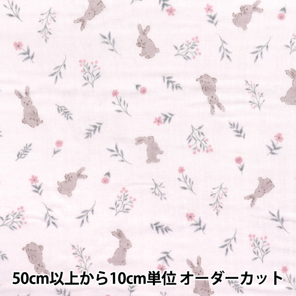 【数量5から】 生地 『Wガーゼ お気に入りベビー フラワーラビット ピンク OKBF-46-P』