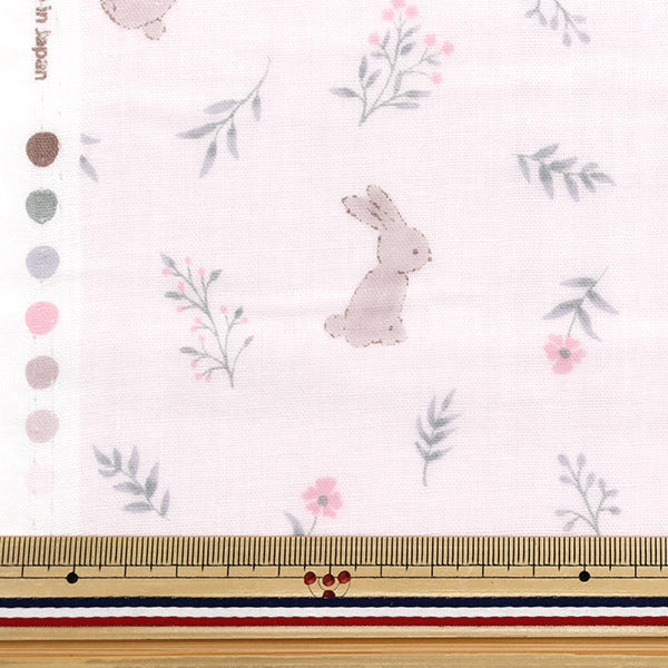 柔らかいトーンで描かれたウサギと草花柄のWガーゼです。