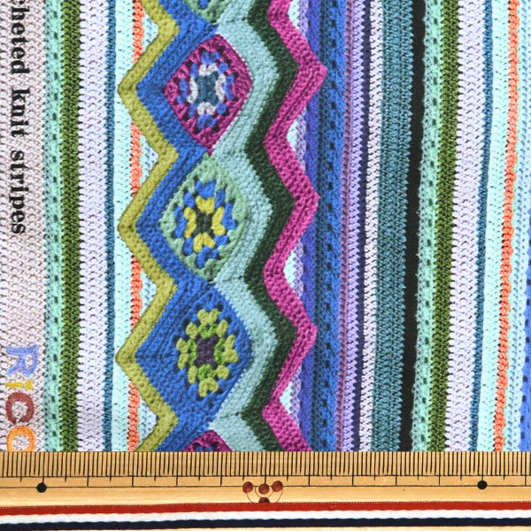 【数量5から】 生地 『デジタルプリント かぎ編ニットのストライプ RR2027B』