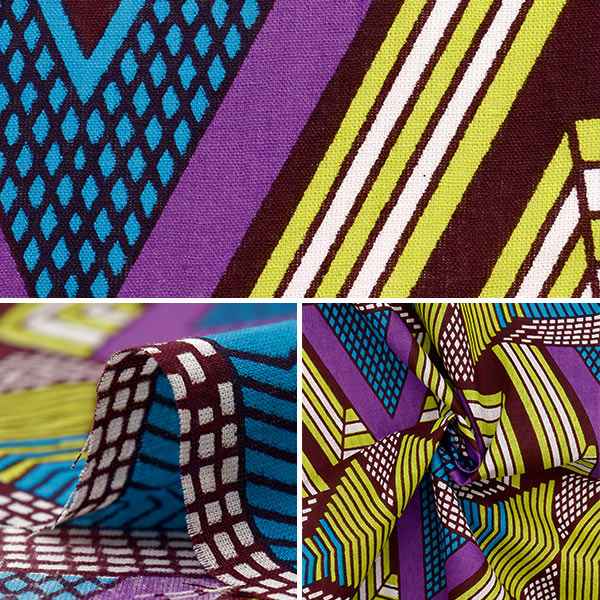 [布 アフリカン ソーイング ハンドメイド インド綿 青 紫 黄緑 ブルー パープル グリーン]