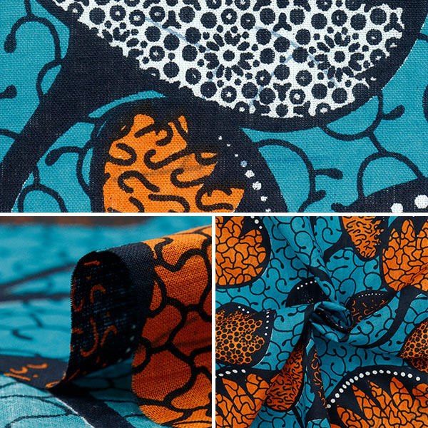 色鮮やかなで大胆な柄のアフリカンプリント生地。
