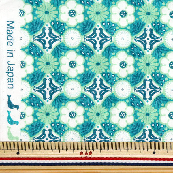 【数量5から】 生地 『スケア 花もよう ブルーグリーン CHSQ-HAN-BLGN』