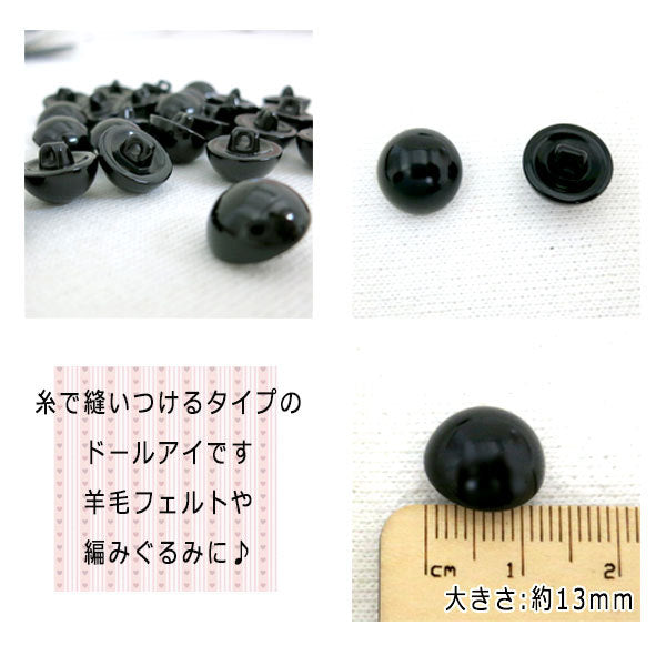 目玉ボタン 13mm 裏穴タイプ 黒 30ヶ入