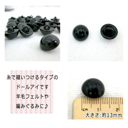 人形・ぬいぐるみ用の縫いつけタイプの半丸目玉パーツです。
