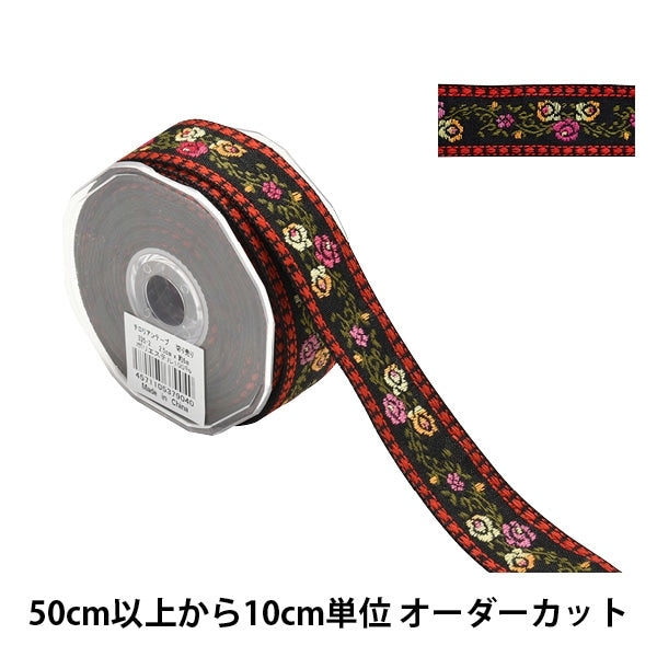 [チロルリボン チロルテープ ラインテープ 縁取り ハンドメイド オリジナル アレンジ 花柄 黒 くろ ブラック]