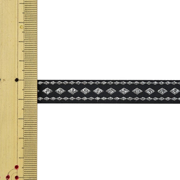 黒地に銀糸が映える、モノトーンのシックなテープです。