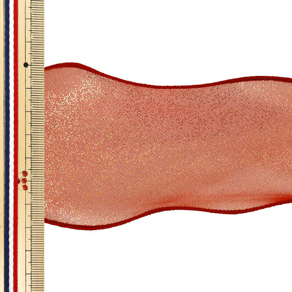[リボン 縁取りリボン 幅広リボン 装飾 服飾 インテリア 雑貨 舞台衣装 コスプレ衣装 オーガンジーリボン シアー素材 ゴールドラメ レッド]