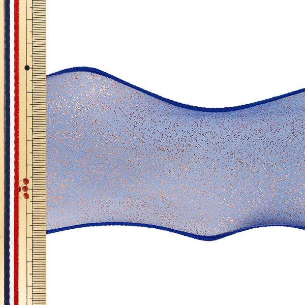 [リボン 縁取りリボン 幅広リボン 装飾 服飾 インテリア 雑貨 舞台衣装 コスプレ衣装 オーガンジーリボン シアー素材 ゴールドラメ コバルトブルー]