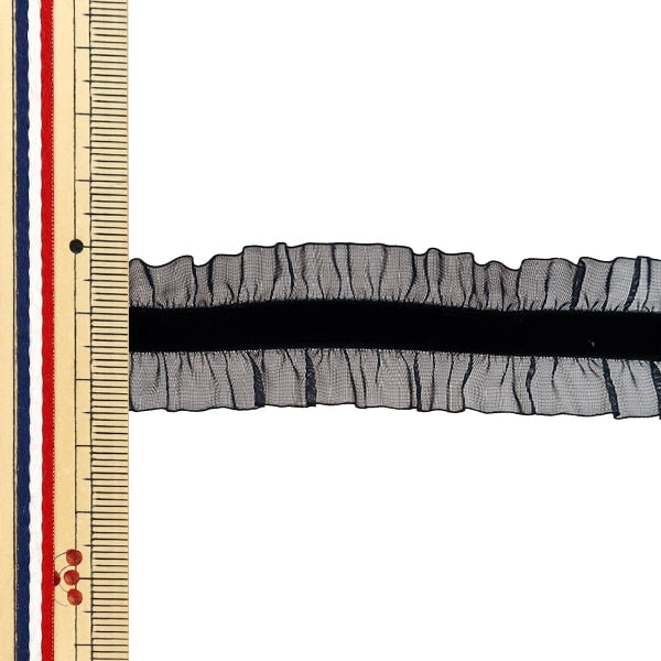 【数量5から】 フリルリボンテープ 『ストレッチベロアフリル 約25mm幅 ブラック FRS2301』