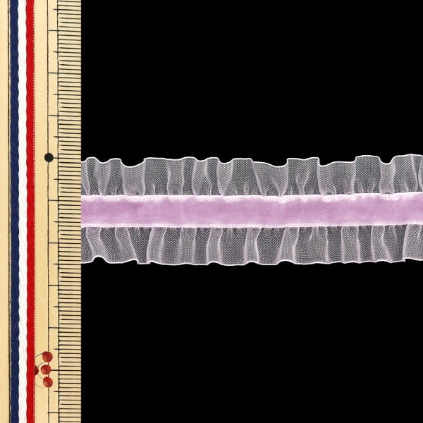 【数量5から】 フリルリボンテープ 『ストレッチベロアフリル 約25mm幅 ライトパープル FRS2301』