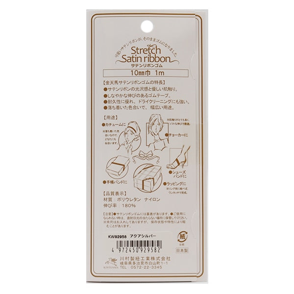 ゴム 『サテンリボンゴム 幅1cm アクアシルバー KW92958』 KINTENMA 金天馬