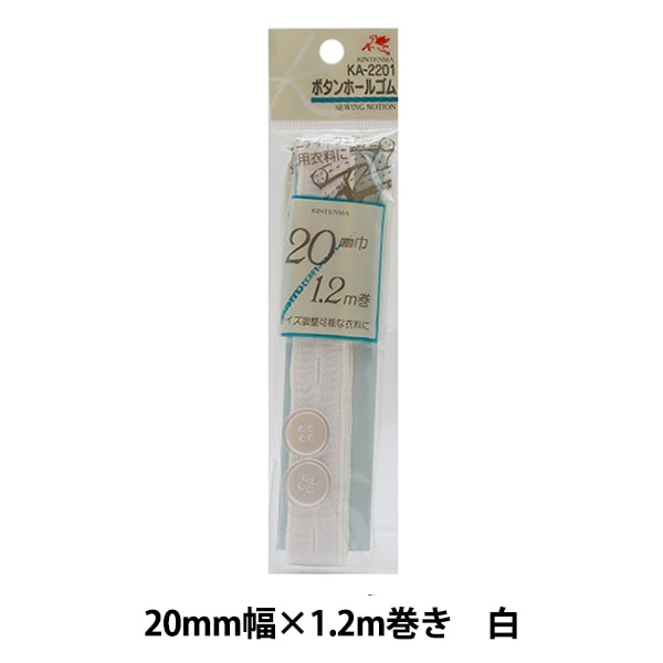 ゴム 『ボタンホールゴム 2cm幅 1.2m巻 白』 KINTENMA 金天馬