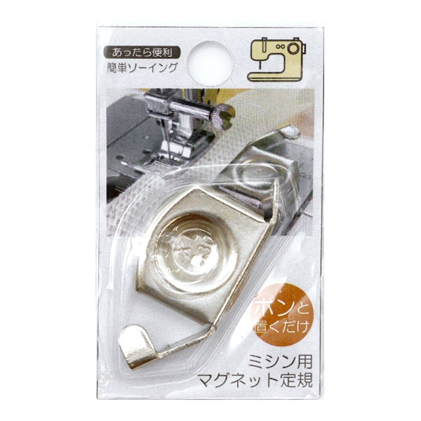 強力な磁石の力でミシンの鉄板に固定し一定の縫いしろ幅で縫えるアタッチメントです。