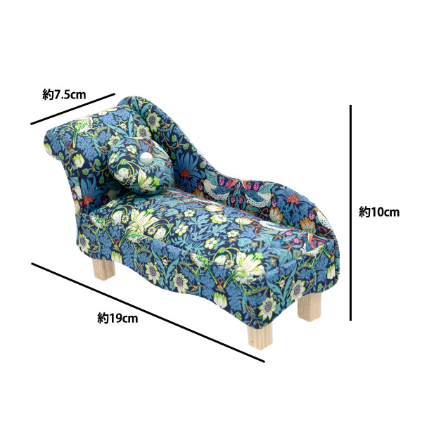 リバティ・ファブリックスのプリント生地で仕立てたインテリアソファの形のピンクッションです。