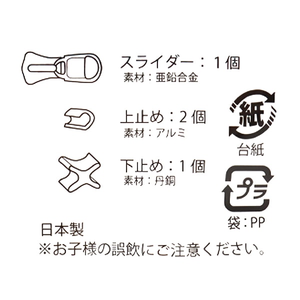 コンビネーションファスナーと組み合わせて使う、スライダーと留め具のセットです!