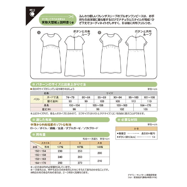 パターン 『プルオンワンピース 6512』 SUN・PLANNING サン・プランニング サンプランニング