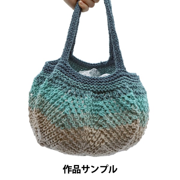 [エコバッグ エコ素材 手編み 編み物 綿混 ターコイズ ブルー ベージュ グレー 灰色]