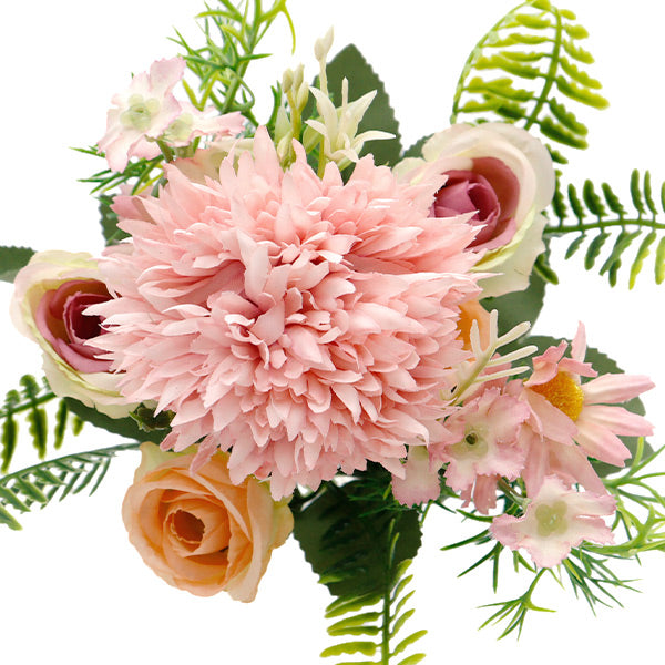 マムとバラとデイジーでまとめられた、ブッシュタイプの造花です。