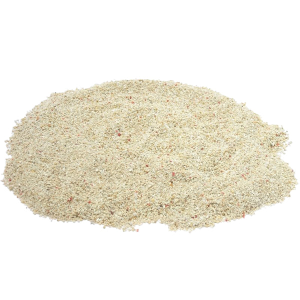 オーストラリア大陸で採取された天然砂から不純物や有機物などを取り除き、400℃の高温で加熱処理を施し、(珪砂)99.8%に精製された、清潔で安全な白砂です。