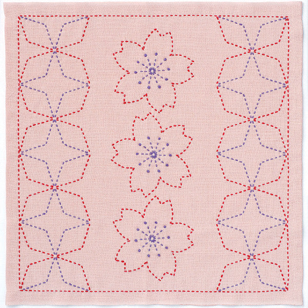 刺しゅうキット 『刺し子キット 花ふきん 桜と角七宝 (渋ピンク) 243』 Olympus オリムパス