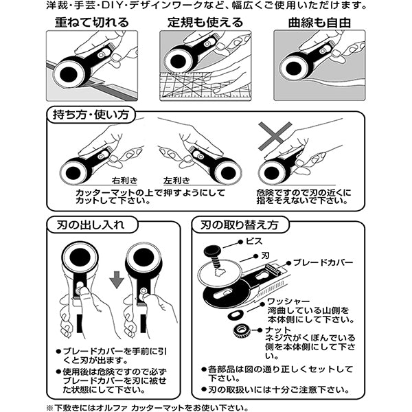 [ロータリカッター L型 flower カッティング ソーイング用品 和洋裁 手芸用品 左右両用 替刃式 円形刃]