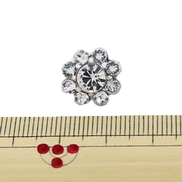 一个华丽的装饰按钮,带有嵌入在花图案中的水钻。