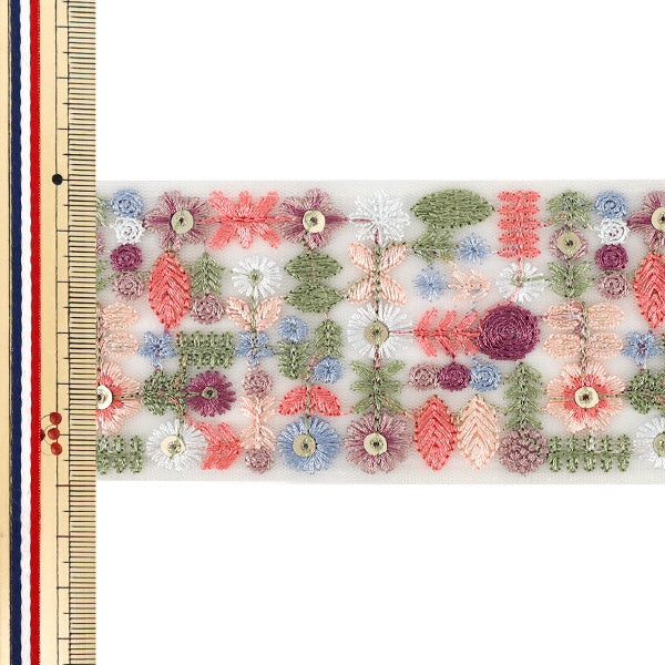 [数量从5起] 手工艺品饰边 『2026印度刺绣饰边 约6cm宽白色×粉色M-5165A”