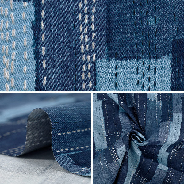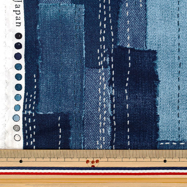 【数量5起】 織物 斜纹刺绣风格牛仔裤拼布 蓝色A YGA-89020-2A"