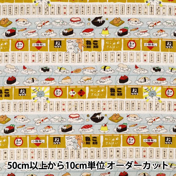 【数量5起】 織物 《棉麻画布回转寿司猫芥末KTS7162-D》" COTTON KOBAYASHI